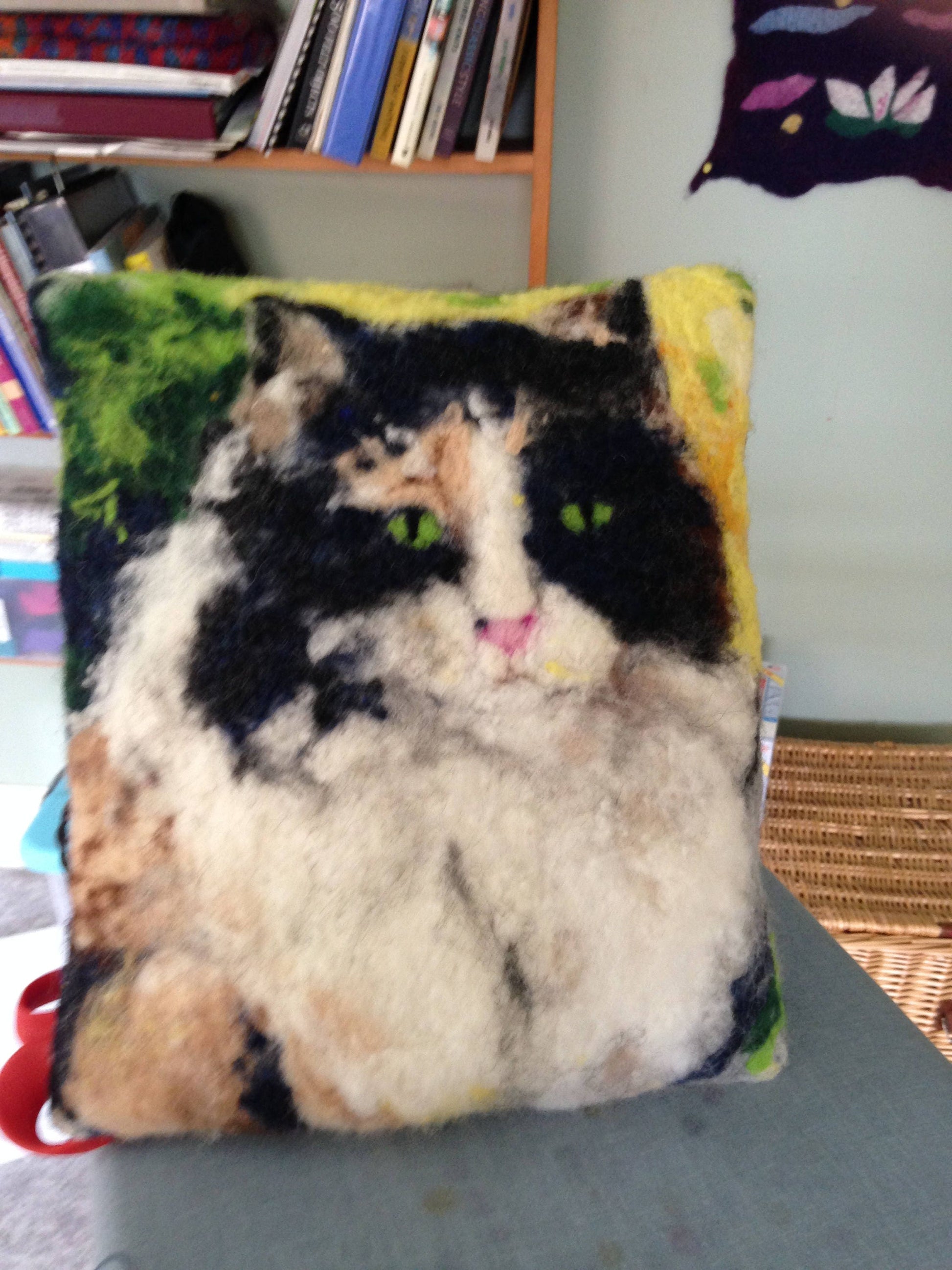I can needle felt a beautiful portrait of your pet, be it a dog, cat, horse, turtle, donkey or rabbit! The quoted price is only an estimate, depending on what you would like me to felt it on. You would send me a high resolution photo and I will make a beautiful, soft version of its better self.