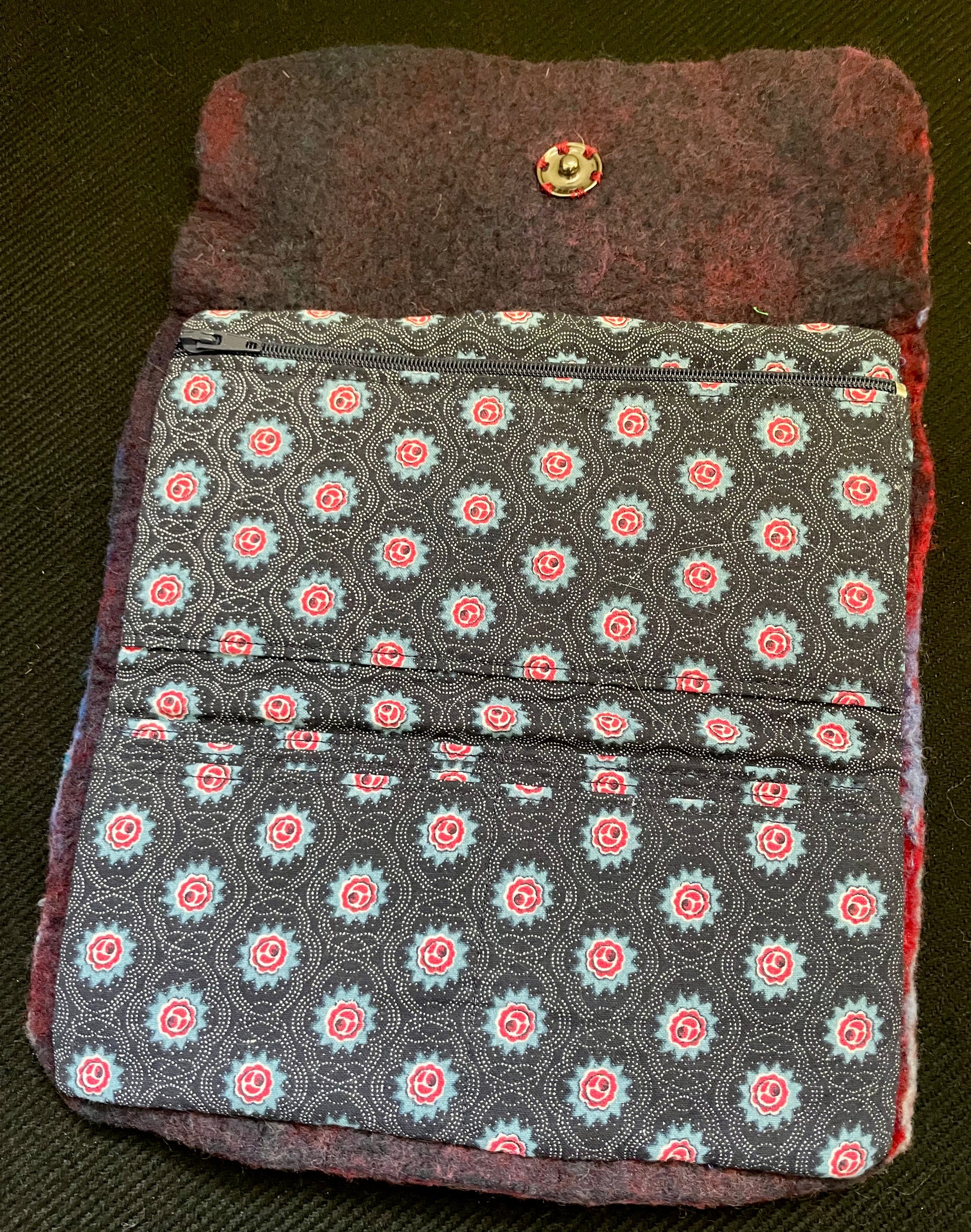 This soft and delicate yet sturdy lined wallet is as practical as it is beautiful. Made in a trifold style, it is complete with a zippered change section, a billfold slot and four roomy credit card and ID slots. The closure is a magnetic snap carefully and snugly attached in order to show off your wallet in the best way possible. The zipper extends the whole way across the opening. Each one of my wallets are unique one of a kind designs with a lot of care and time put into each detail. Dimensions: closed trifold: 7.5" x 4.25" opened trifold: 7.5" x 11"